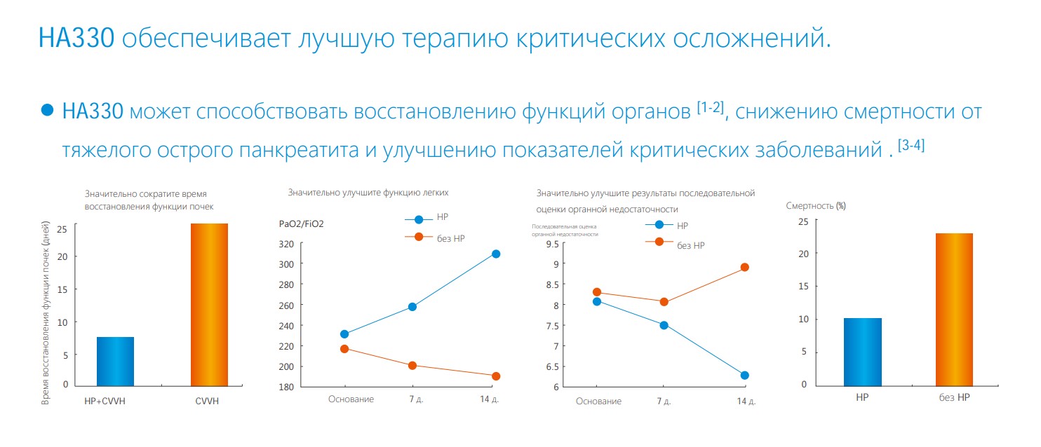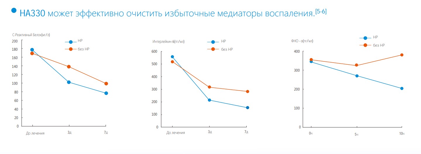 HA 330 удаляет медиаторы воспаления и регулирует иммунитет организма у критически больных пациентов в отделении интенсивной терапии и тех, кто перенес кардиохирургические операции. Улучшите гемодинамику, функции органов и уменьшите смертность.